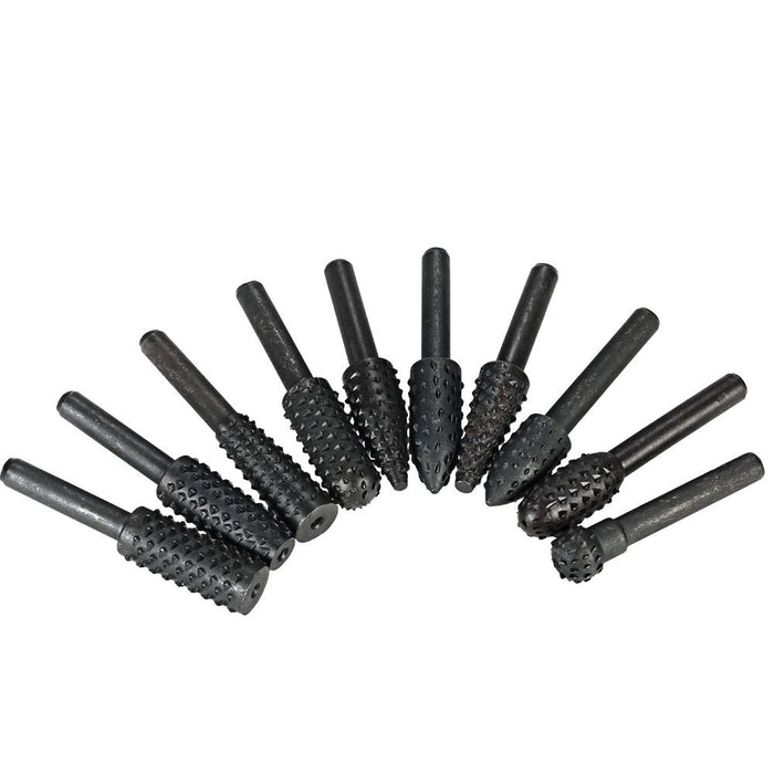 10pcs Rotary Files Rasp Set 6mm Shank Carbon Steel Carbide Milling Cutter Rotary File Burr Tool Woodworking Carving Bits Grinding Accessories