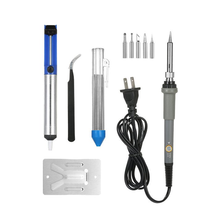 This soldering tools kit provides sufficient assist during your soldering work. Set includes 10pcs tools: soldering iron, desoldering pump, tweezers, soldering tips, iron stand and tin wire tube.